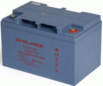 - Как и все гелевые аккумуляторы Chilwee 6-EVF-60 не обслуживаются в течение всего срока эксплуатации и не требуют наличия специального зарядного помещения.