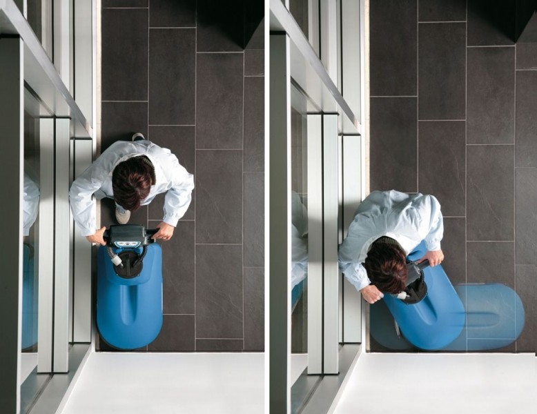 Подвижная рукоятка легко подстраивается под рост оператора и облегчает уборку в углах и других труднодоступных местах.