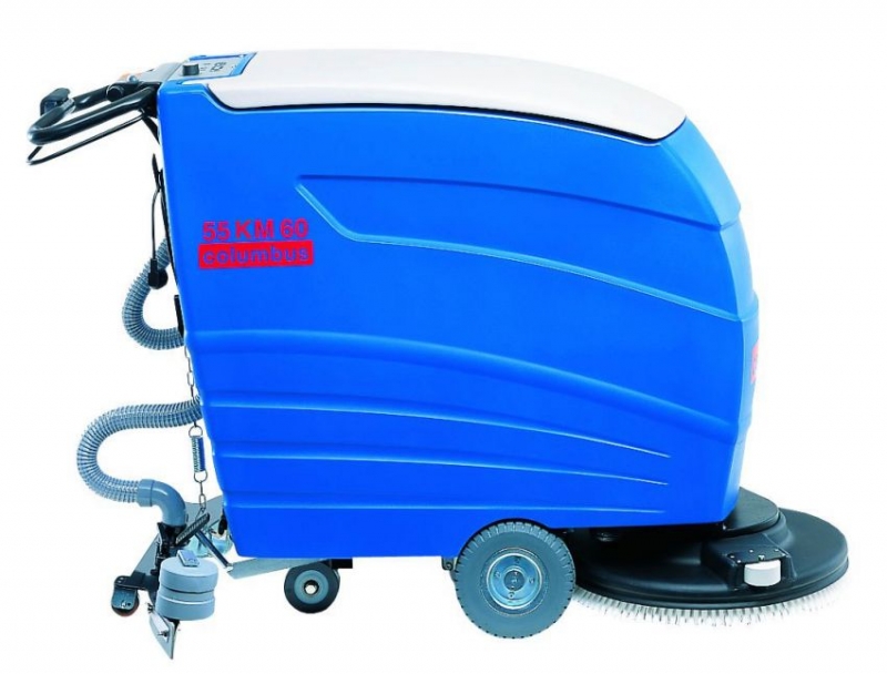Поломоечная машина Columbus RA 55 КМ 60 работает от сети и оснащена приводом хода на колеса. Ее